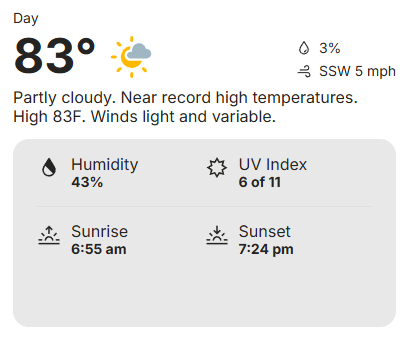 For Saturday. we’re looking at partly cloudy skies with temps in the 80’s so it’s going to be a beautiful weekend. A reminder that even with partly cloudy skies, don’t forget sunblock as the UV index is elevated.